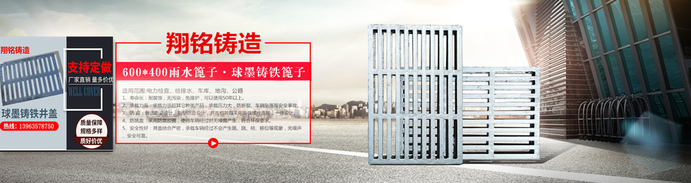 山東翔銘金屬制造有限公司擁有雄厚的技術(shù)力量,設(shè)備齊全,檢測手段完善,管理方法科學(xué)。隨著改革開放的不斷深入,市政建設(shè)正日新月異地飛速發(fā)展,本廠愿積極的態(tài)度為城市建設(shè)現(xiàn)代化做出應(yīng)有的貢獻。球墨鑄鐵井蓋,雨水鑄鐵篦子,車庫篦子,排水溝蓋板,球墨鑄鐵篦子具有優(yōu)良的耐腐性能,強度高,抗強壓,抗挫,抗拉,抗沖擊及承載能力強,防盜,安全等優(yōu)點。使用說明經(jīng)過國家化學(xué)建材質(zhì)量監(jiān)督檢驗中心及質(zhì)量技術(shù)監(jiān)督檢驗研究院的化學(xué)檢測,技術(shù)指標(biāo)可長達50年之久,球墨鑄鐵井蓋是市政建設(shè),城市綠化的選擇。多年來,本廠產(chǎn)品暢銷省內(nèi)外,質(zhì)量可靠,售后服務(wù)完善,深受廣大用戶的好評。